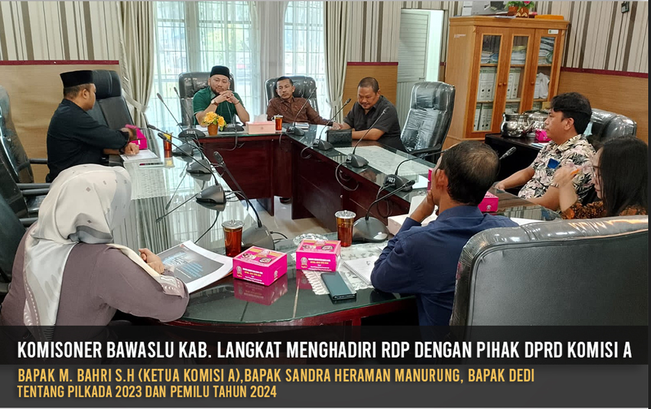 Langkat, Bawaslu Kabupaten Langkat - Menjelang Pilkada dan pemilu yang semakin mendekat, Ketua Bawaslu Kabupaten Langkat beserta Anggota melakukan Rapat Dengar Pendapat (RDP) dengan pihak DPRD Komisi A di Ruang Kantor DPRD Komisi A, (12/09/2023)