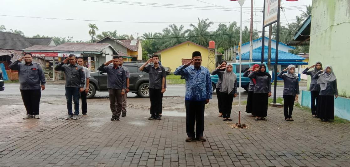 Seluruh Staf Sekretariat beserta Kodinator Sekretariat dan Komisioner Bawaslu Langkat tampak berhadir di halaman sekretariat. Mereka berbaris sesuai dengan intruksi dari pemimpin barisan.
