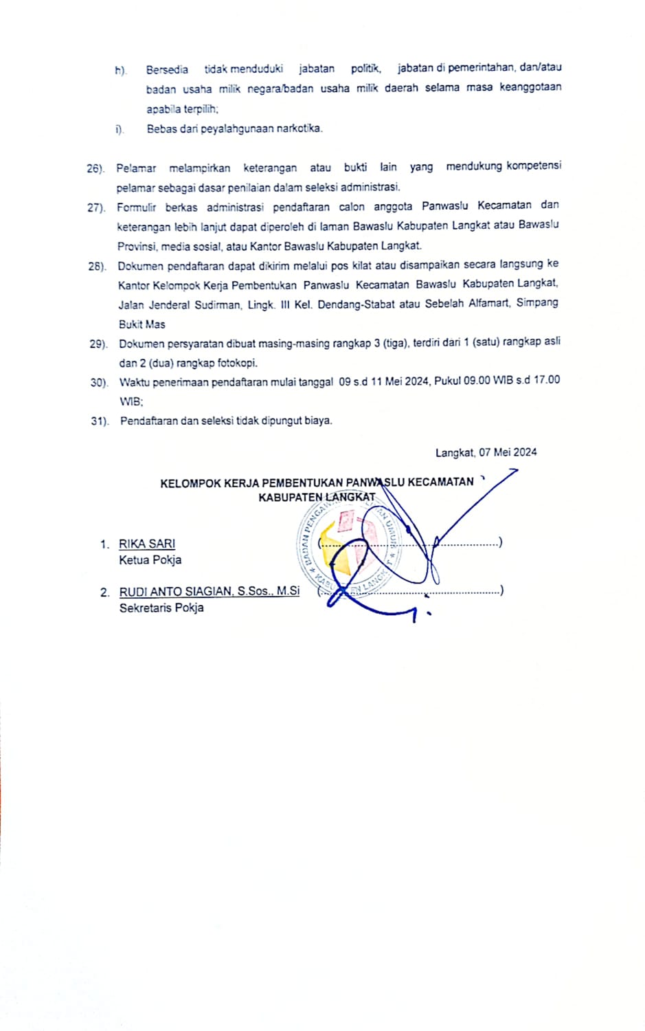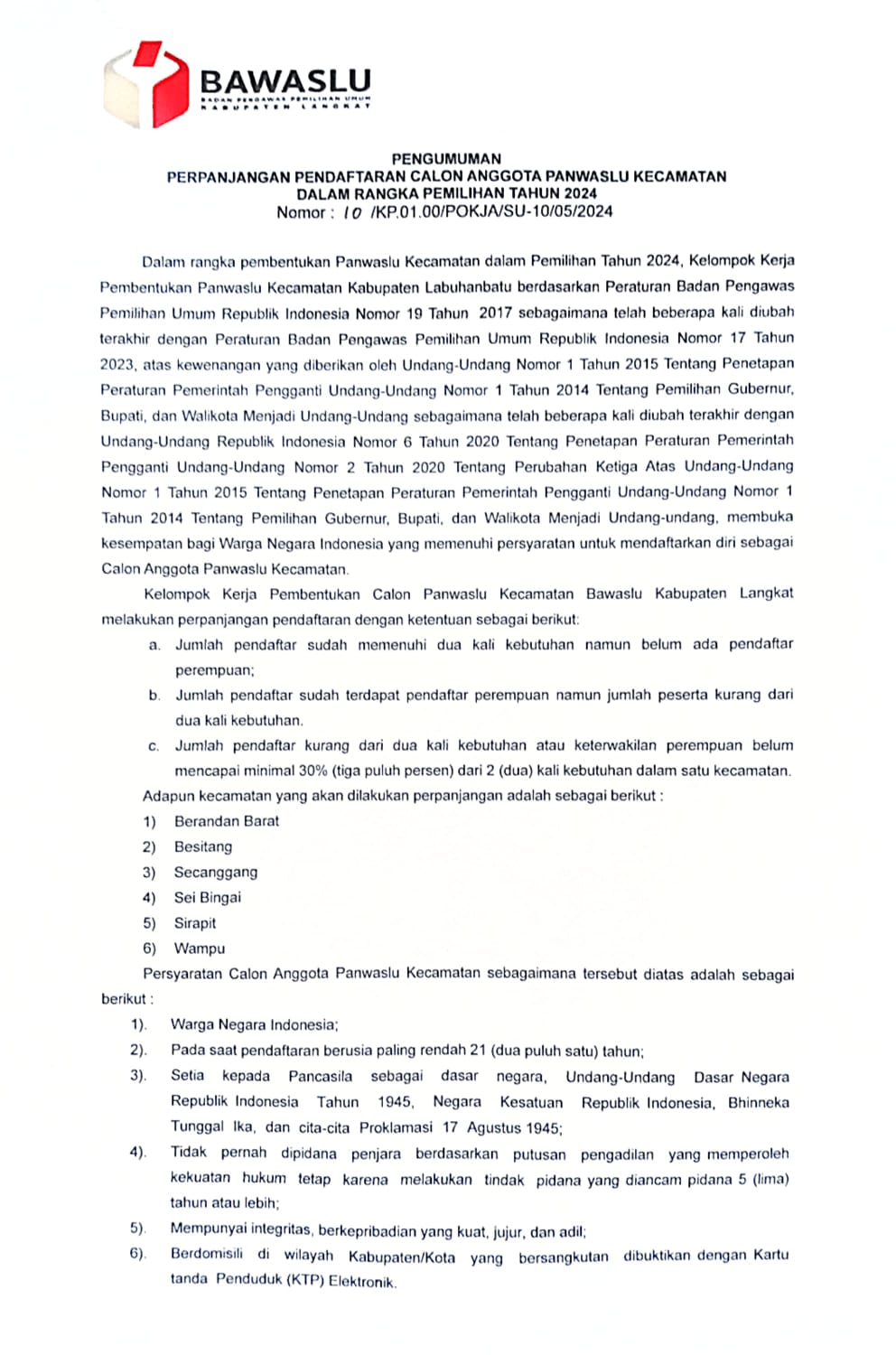 PERPANJANGAN PENGUMUMAN REKRURMEN PANWASCAM